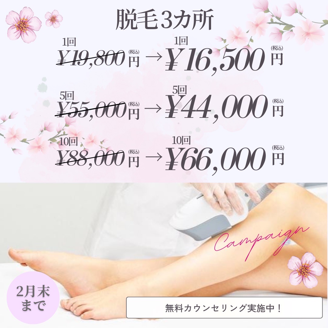 ただいま脱毛キャンペーン開催中です。